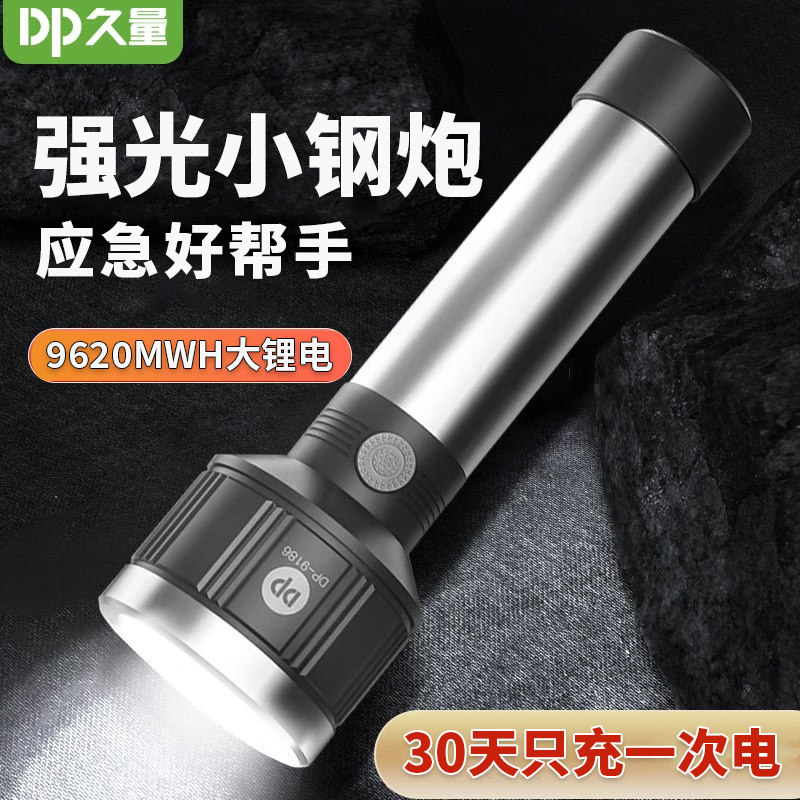 天猫久量9186强光led手电筒超亮应急家用学生便携可充电换18650锂电池