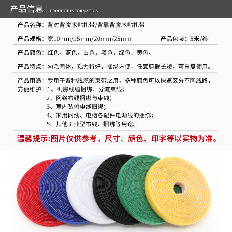 天猫魔术贴扎带 背靠背粘扣带 机房绑线带 背对背魔术贴 多色 5米/卷