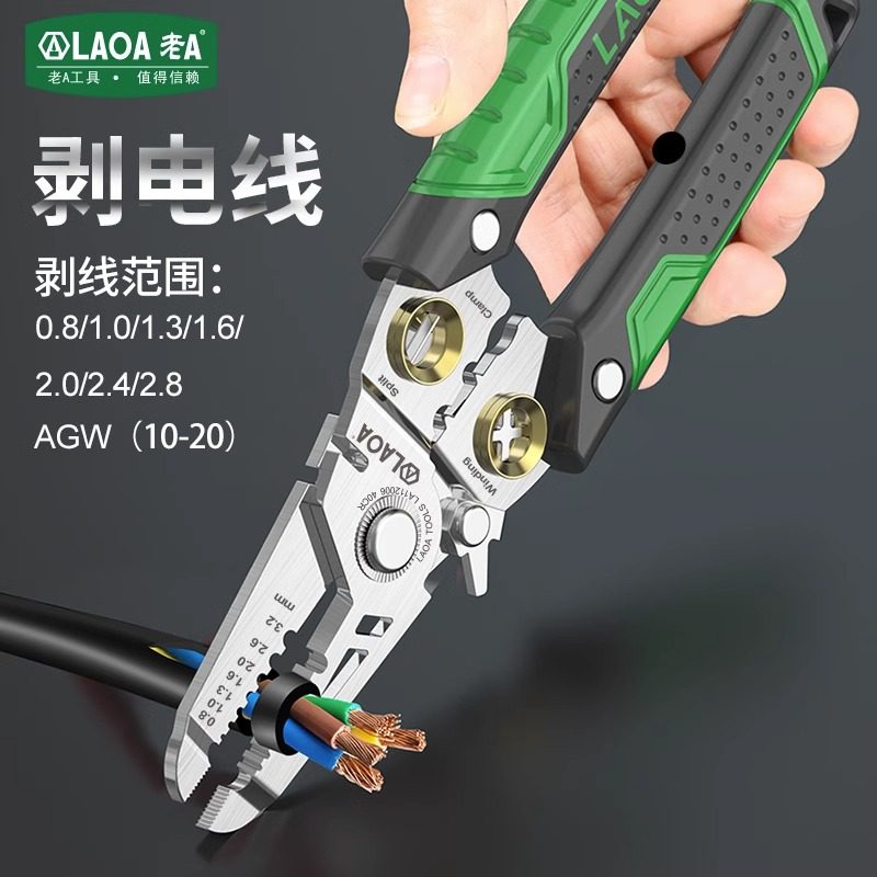 老A剥线钳是一款专为电工和通信工程设计的全能型多功能工具,集剥线、剪线、压线、扒皮及光纤处理于一体。采用高硬度合金钢材质,刃口锋利耐用,可精准剥离各类电线、同轴电缆及光纤外皮,不损伤内部导体。人体工学防滑手柄设计,操作省力且安全可靠。适用于家庭布线、网络安装、通信维护等多种场景,尤其适合处理细至光纤、粗至电缆的多种线材。结构紧凑、功能集成,是专业电工、网络工程师和DIY爱好者的理想工具,显著提升工作效率,确保施工质量。
