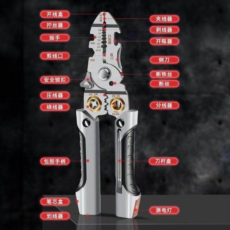 新款多功能剥线钳电工专用带测电折叠电工钳分线绕线压线钳子工具
