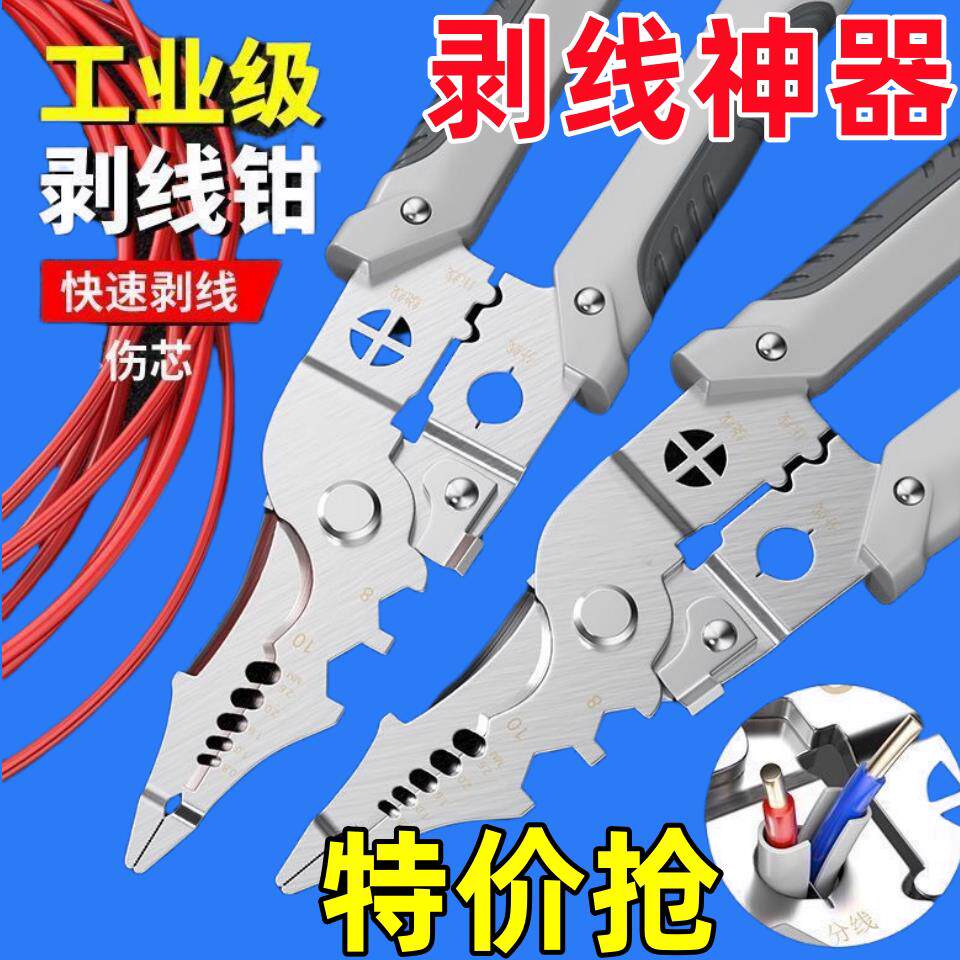淘多功能剥线钳电工专用工具剪刀拨线钳子万用接线压线扒皮开壳神器