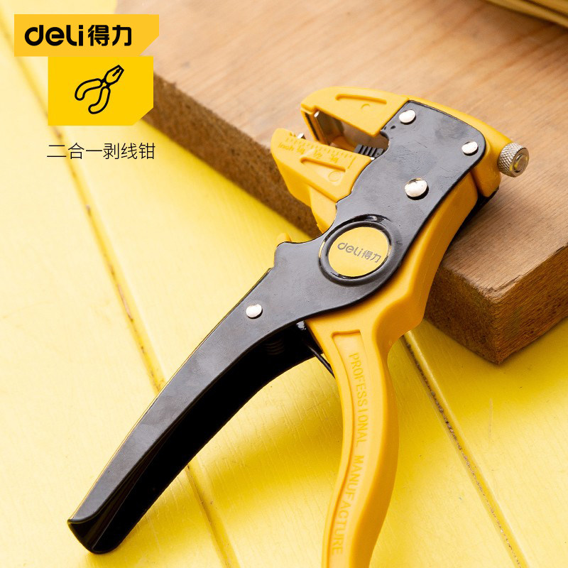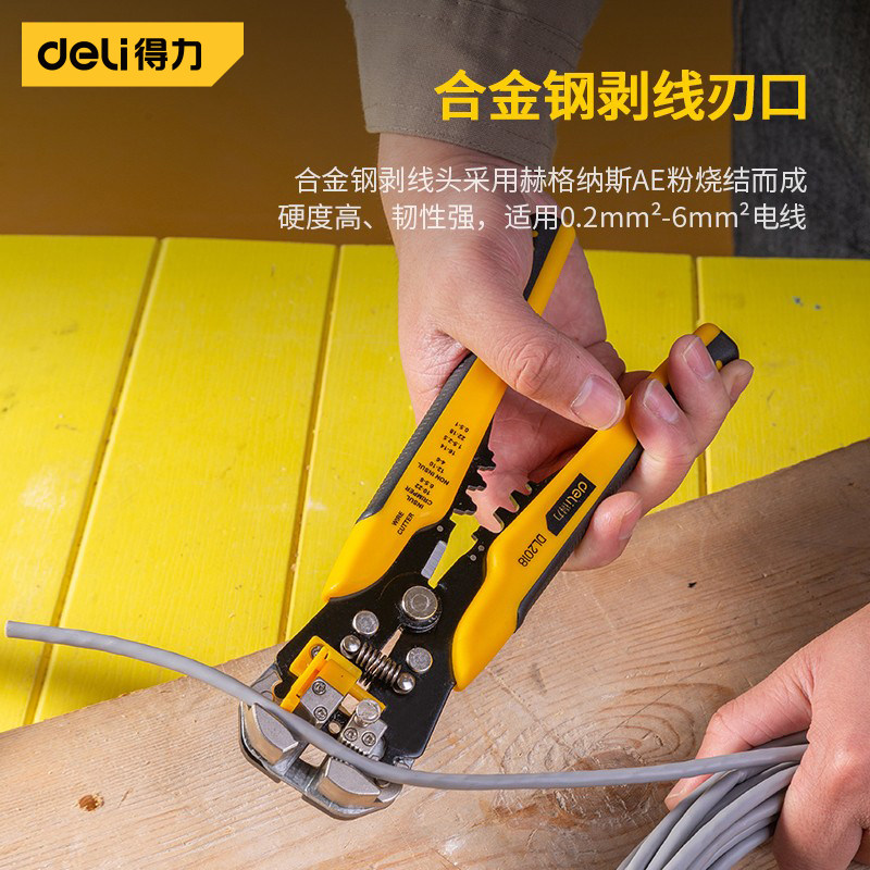 得力剥线钳是一款专为电工设计的多功能专业工具,集剥线、剪线、压接等功能于一体,适用于多种规格的电线(如0.5–6mm²)。其精密刀口采用高硬度合金钢打造,确保剥线精准、不伤导体,操作省力高效。钳身符合人体工学设计,握感舒适,防滑耐用。前端设有剥线孔位标识,可快速识别适用线径,提升作业效率。无论是家庭布线、电器维修还是工业安装,都能轻松应对。得力剥线钳结构坚固、功能全面,是电工师傅和DIY爱好者的理想选择,兼具安全性与实用性,让电线处理更加便捷可靠。