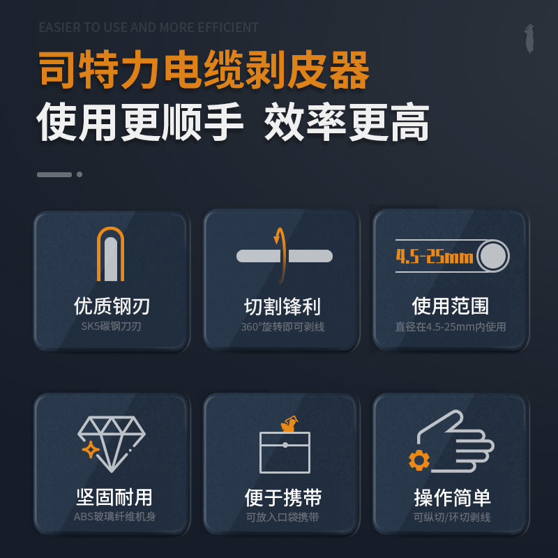 天iCrimp威仕工具电缆剥线钳剥皮刀电线绝缘线电缆手动快速剥皮器