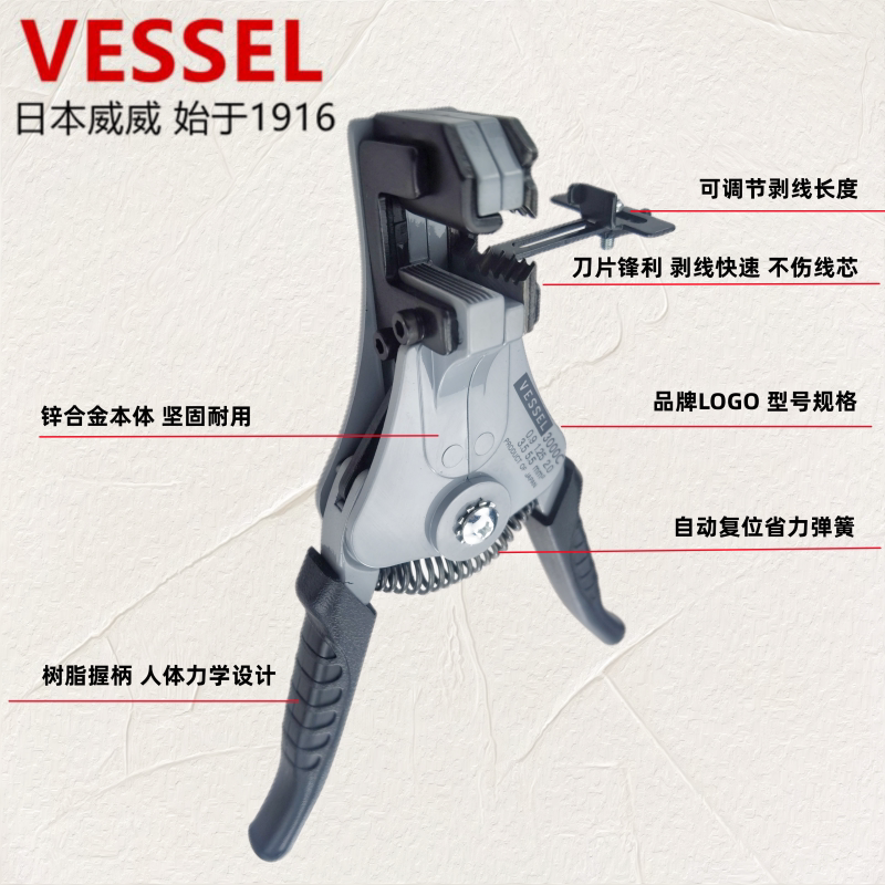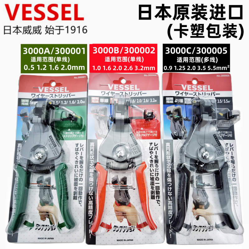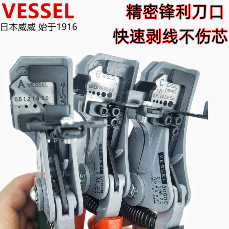淘宝原装日本VESSEL威威3000A进口3000B 3000C自动剥线钳多功能剥皮钳