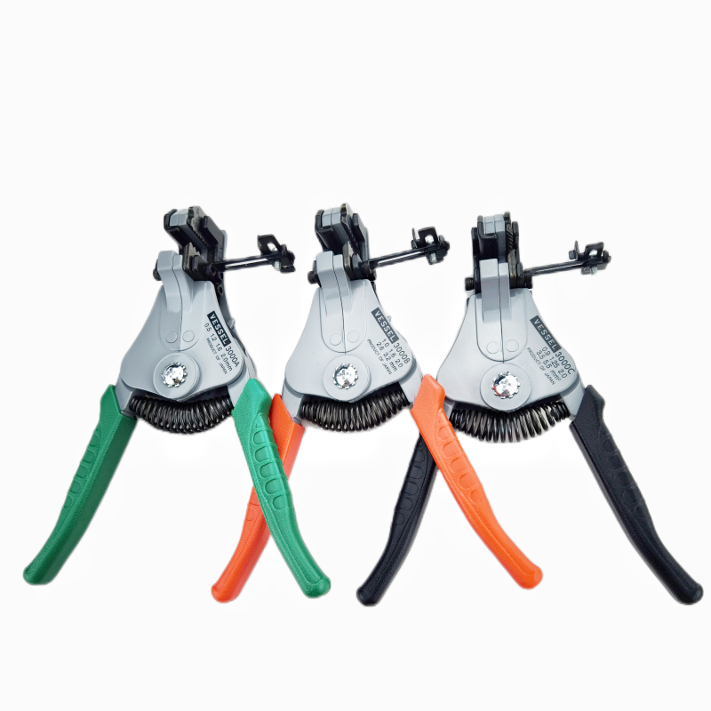 原装日本VESSEL(威威)3000系列自动剥线钳(含3000A、3000B、3000C型号)是一款高品质多功能剥皮工具,专为电工、电子工程师及维修人员设计。采用日本精密制造工艺,具备高效、精准、耐用的特点。该系列支持多种线径(0.05–6mm²),可轻松剥离单芯、多芯及屏蔽线缆绝缘层,切口平整不伤导体。3000A适用于常规作业,3000B增强防滑手柄设计,3000C则配备可调剥线长度功能,操作更灵活。人体工学握把减轻疲劳,内置弹簧提升效率,是专业布线与维护的理想之选,广泛应用于通信、家电、汽车电子等领域。