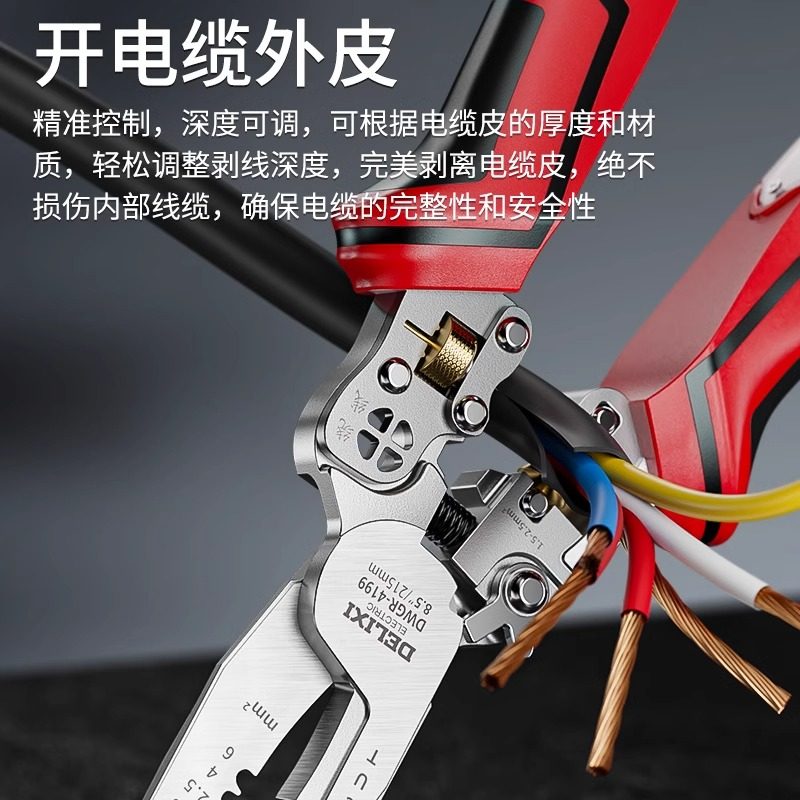 德力西电气剥线钳电工专用钳子多功能拔线分线压线剥皮神器剪线钳