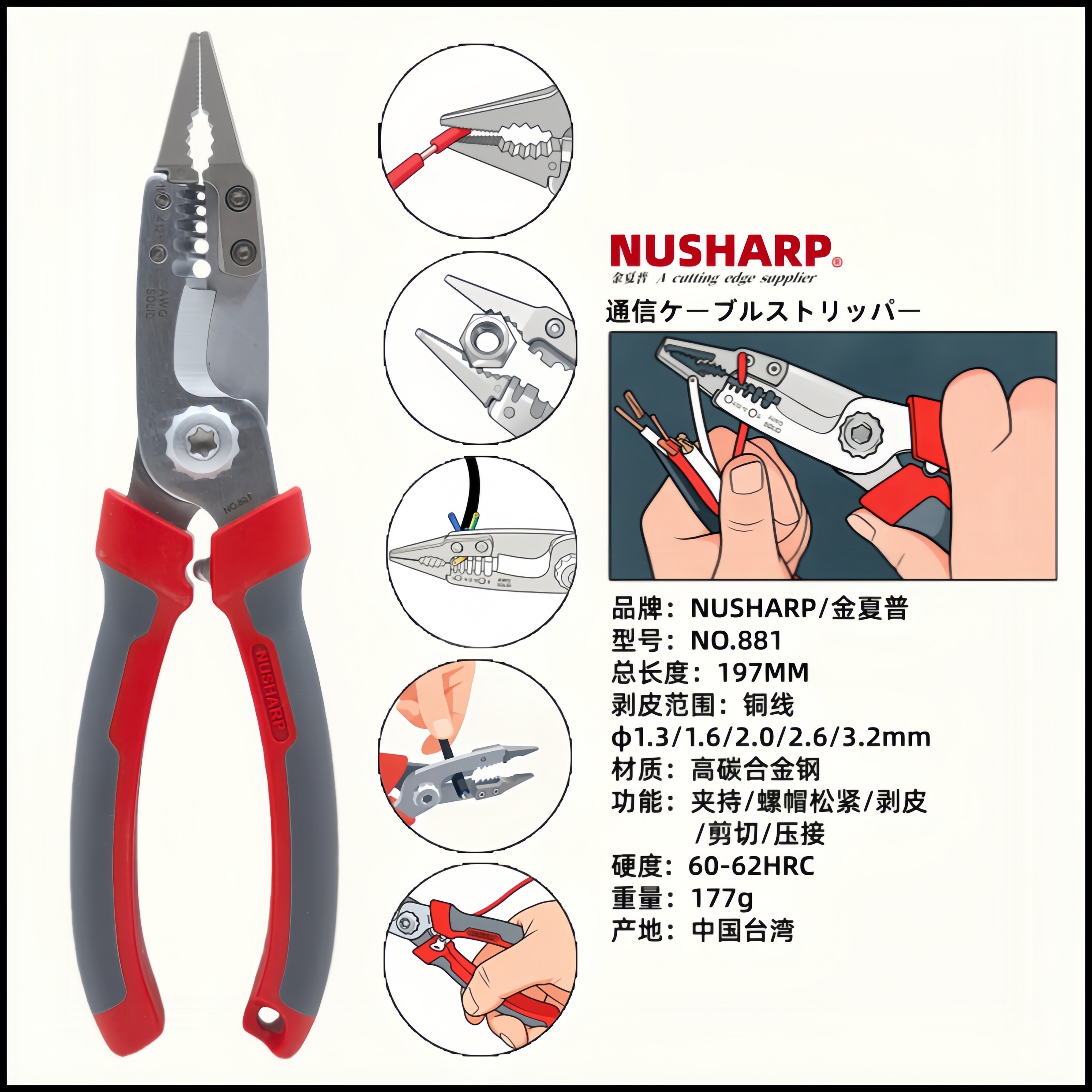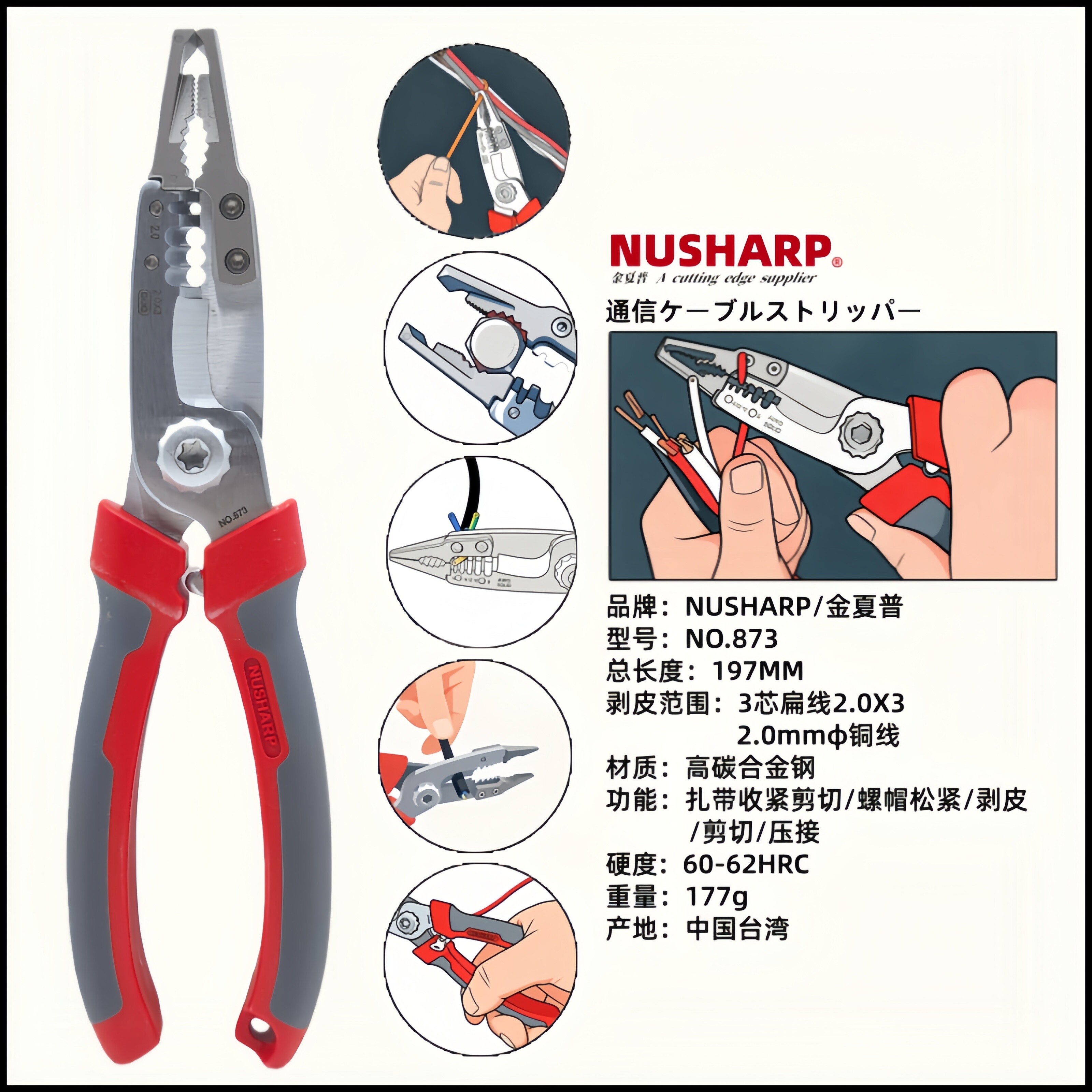 淘宝日本NUSHARP金夏普进口尖嘴多功能电工剥线钳3芯扁线单股电线剥皮