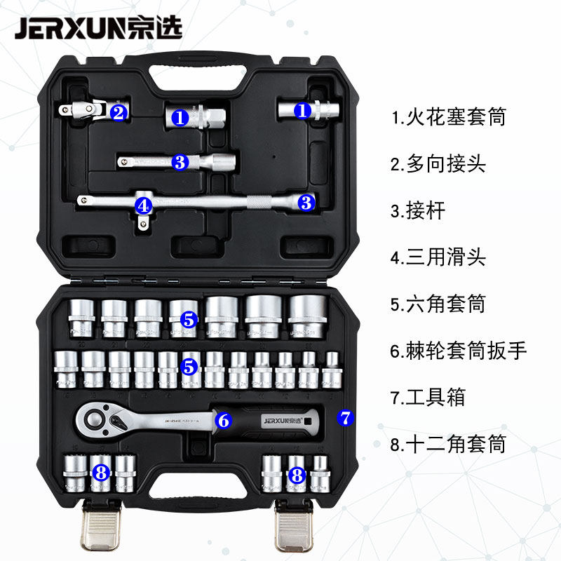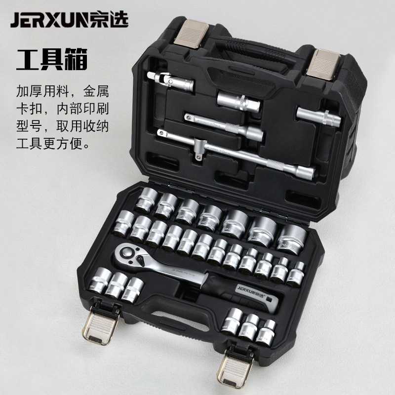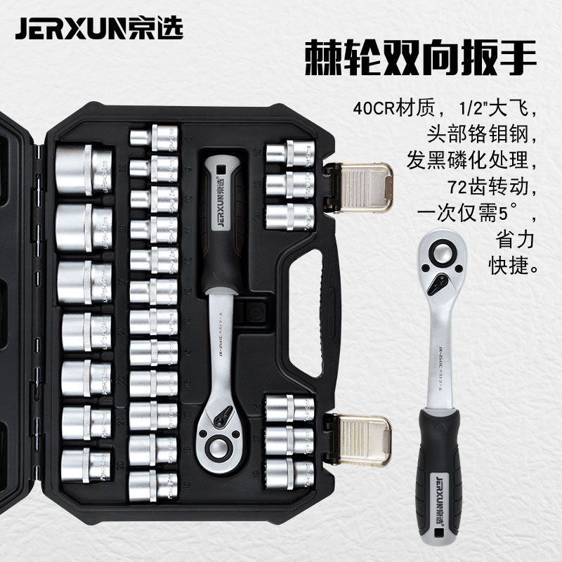京选棘轮套筒扳手1/2大飞快扳火花塞套管六角摩托车汽修组合套装,专为专业维修与日常维护设计。采用高强度合金钢材质,经热处理工艺,确保耐用性与抗冲击性能。1/2英寸大飞设计,搭配快速释放棘轮扳手,操作高效省力,适用于摩托车、汽车等狭小空间作业。套装包含多种常用六角套筒及专用火花塞套管,规格齐全,兼容性强。结构紧凑,收纳便捷,是汽修技师和DIY爱好者的理想工具选择。精密制造,咬合紧密,有效防止打滑,提升作业安全性与效率,满足多样化维修需求。
