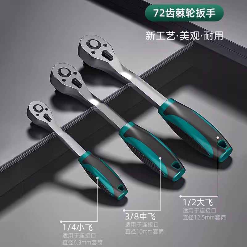 淘套筒扳手棘轮套筒组合套装扳手飞扳套装大飞1/4吋套筒扳手组套汽