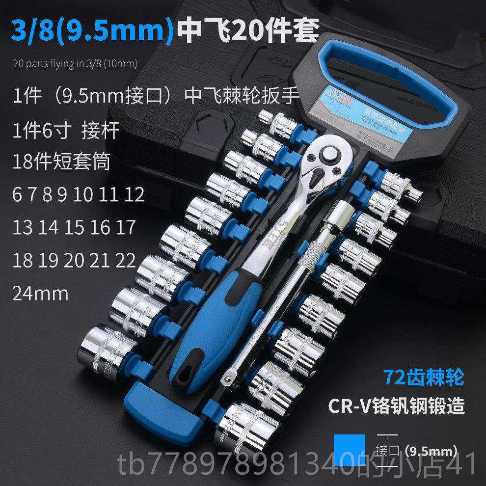 淘套筒棘轮扳手组合大中小飞53全套汽修轮胎摩托车维修大全工具套装
