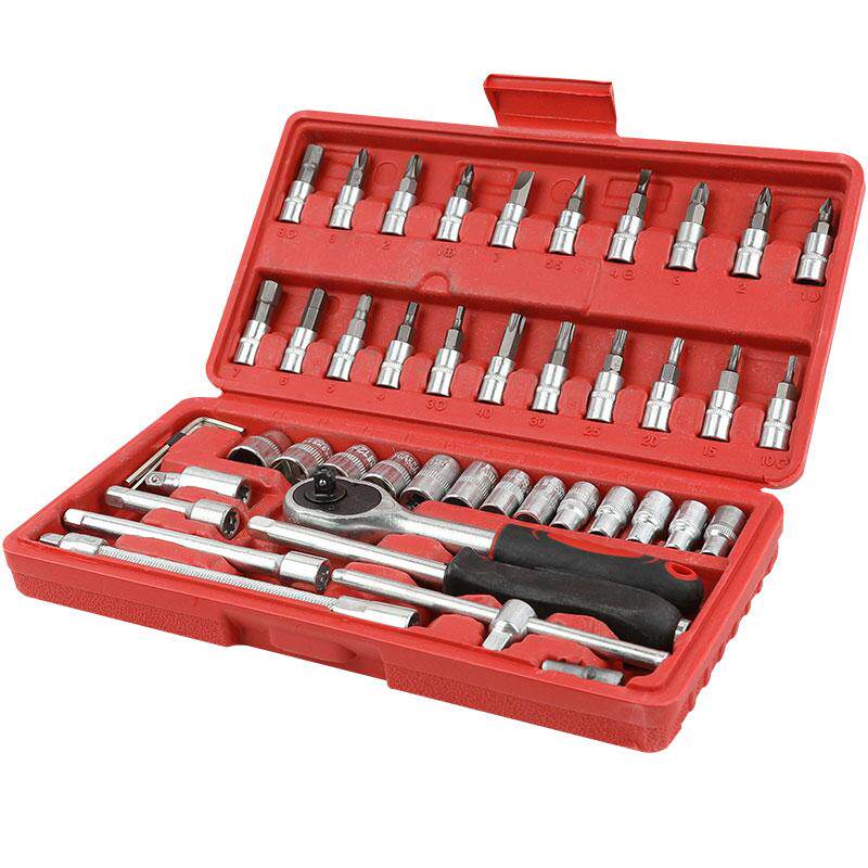 新款46件工具套组 1/41套/4吋工套筒扳手工具装小棘轮工具车套筒