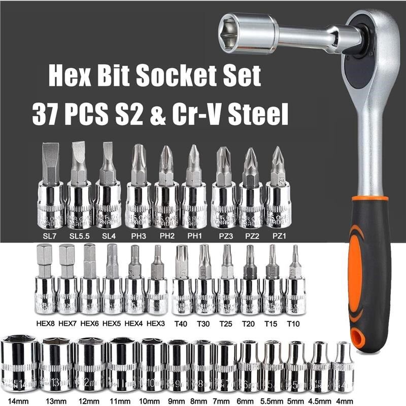 新款46件工具套组 1/41套/4吋工套筒扳手工具装小棘轮工具车套筒