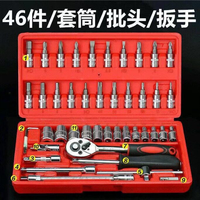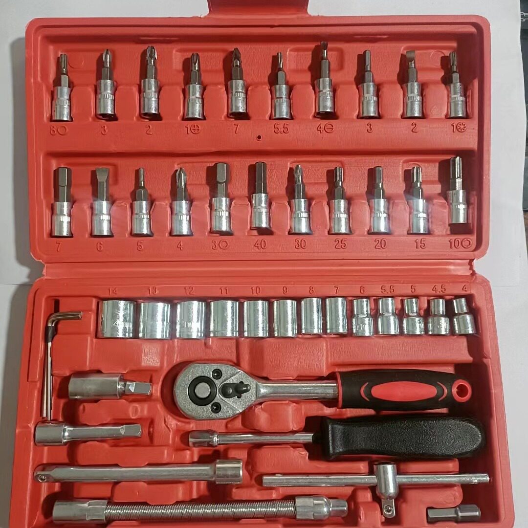 淘宝46件套组合工具汽修组套套筒扳手棘轮扳手批头套装工具箱厂家