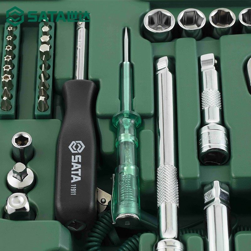世达128件汽修工具套装(型号09014A)是一款专业级汽车维修组套,包含120件常用工具及2件专用配件,涵盖套筒、扳手、螺丝刀、钳类等全品类工具,满足发动机、底盘、电气系统等多场景维修需求。采用高品质铬钒钢材质,经热处理工艺打造,具备高强度与耐用性,防锈防腐性能优异。套装配备坚固工具箱,分类清晰、便于收纳与携带,适合汽修厂、4S店及DIY爱好者使用。世达品牌保障,符合人体工学设计,操作省力高效,是专业维修与日常维护的理想选择,兼顾实用性与可靠性,提升作业效率与安全性。