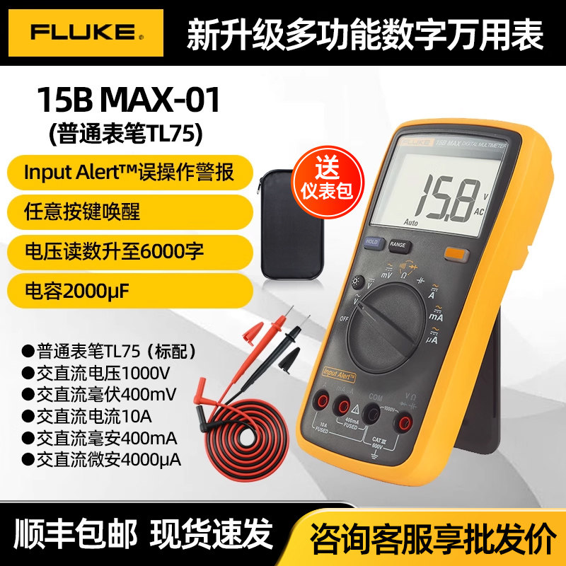 天猫福禄克Fluke15B MAX-01高精度数字万用表电工万能表17BMAX-02/KIT