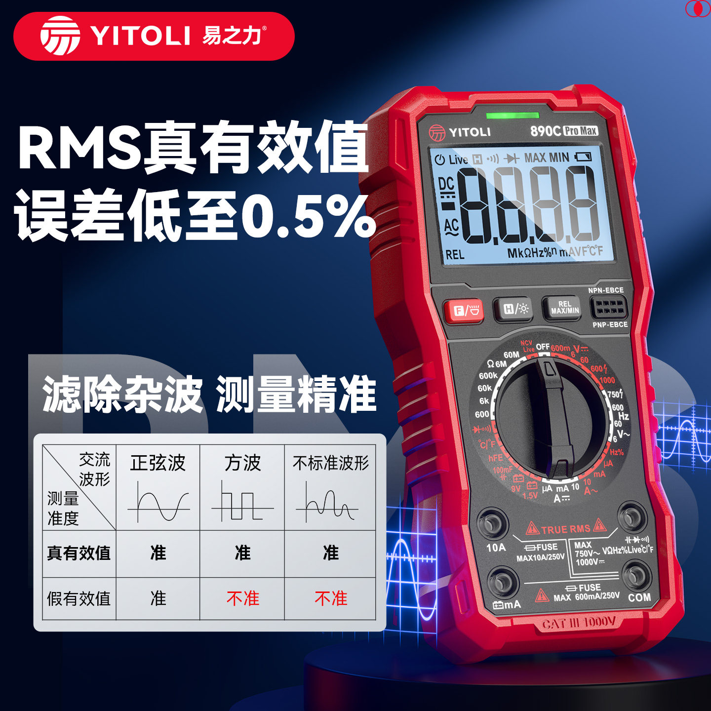 易之力新款便携工业级高精度防烧智能万用表集相序检测与万用表功能于一体,专为电工设计。采用工业级防护结构,具备防烧保护、过载报警及自动量程功能,确保在复杂工况下安全耐用。高精度ADC芯片保障测量精准,支持电压、电流、电阻、电容、频率及相序检测等多功能,LCD背光大屏清晰显示数据。内置智能识别系统,可自动判断接线状态并提示相序正逆,提升作业效率。体积小巧、操作简便,适用于电力系统、电机维护、配电柜检测等场景,是专业电工值得信赖的智能检测工具。