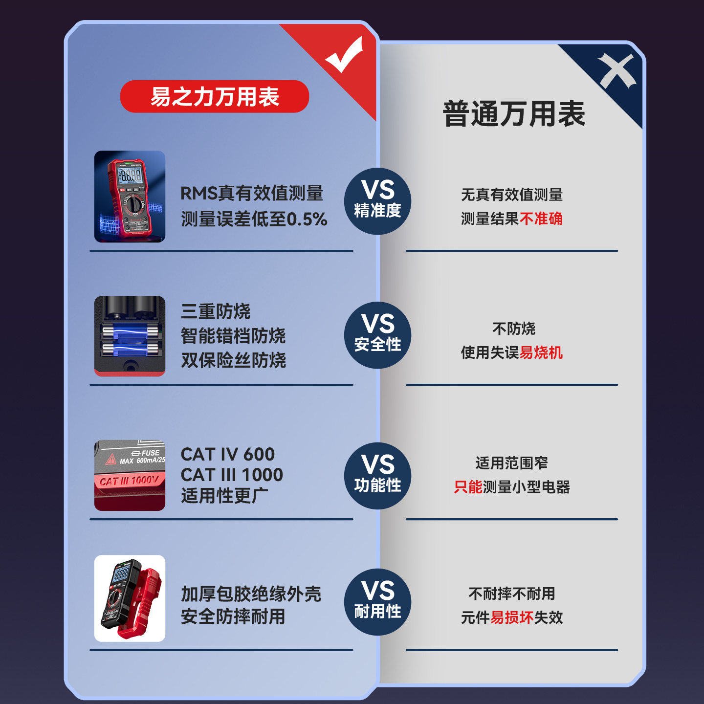 天猫易之力新款便携工业级高精度防烧智能万用表相序表电工专用万用表