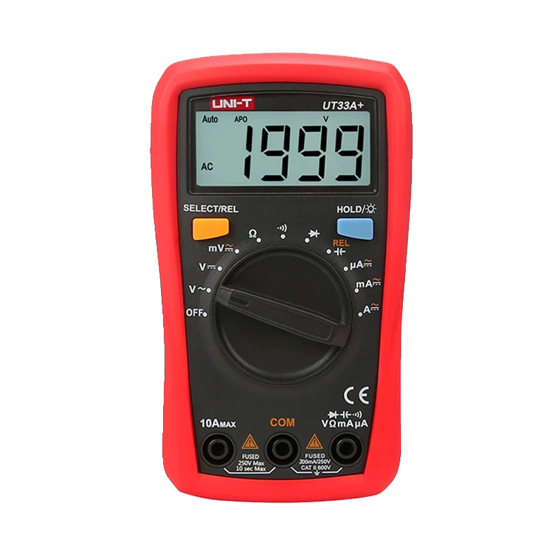 UNI-T优利德UT33A+/B+/C+小型数字万用表是一款专为电工及电子爱好者设计的便携式数显万能表,具备直流/交流电压、电流、电阻、通断测试、二极管检测等基础测量功能。其紧凑机身搭配清晰的液晶背光显示屏,便于在昏暗环境中读数。全系采用防烧设计,内置保险丝保护,提升使用安全性。UT33系列操作简便,响应迅速,适用于家庭电路检修、设备维护等场景。B+与C+型号在功能或精度上略有升级,满足不同用户需求。凭借优利德品牌可靠的品质与亲民价格,UT33系列成为入门级万用表的优选之一。