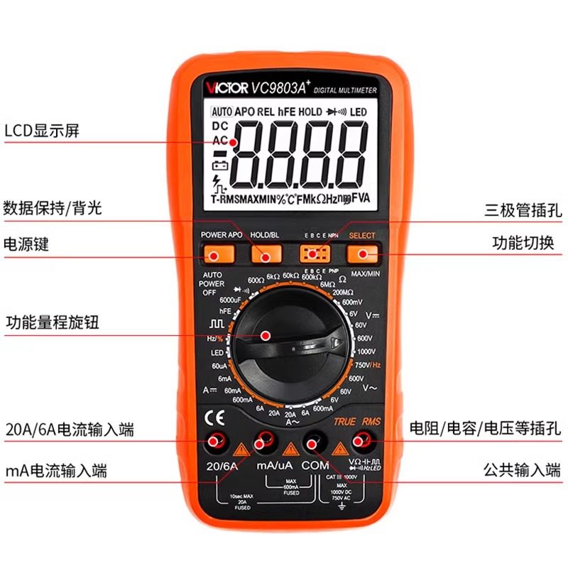 淘宝【厂家直营】胜利VC9801A+万用表数字高精度四位半电工专用9803a+