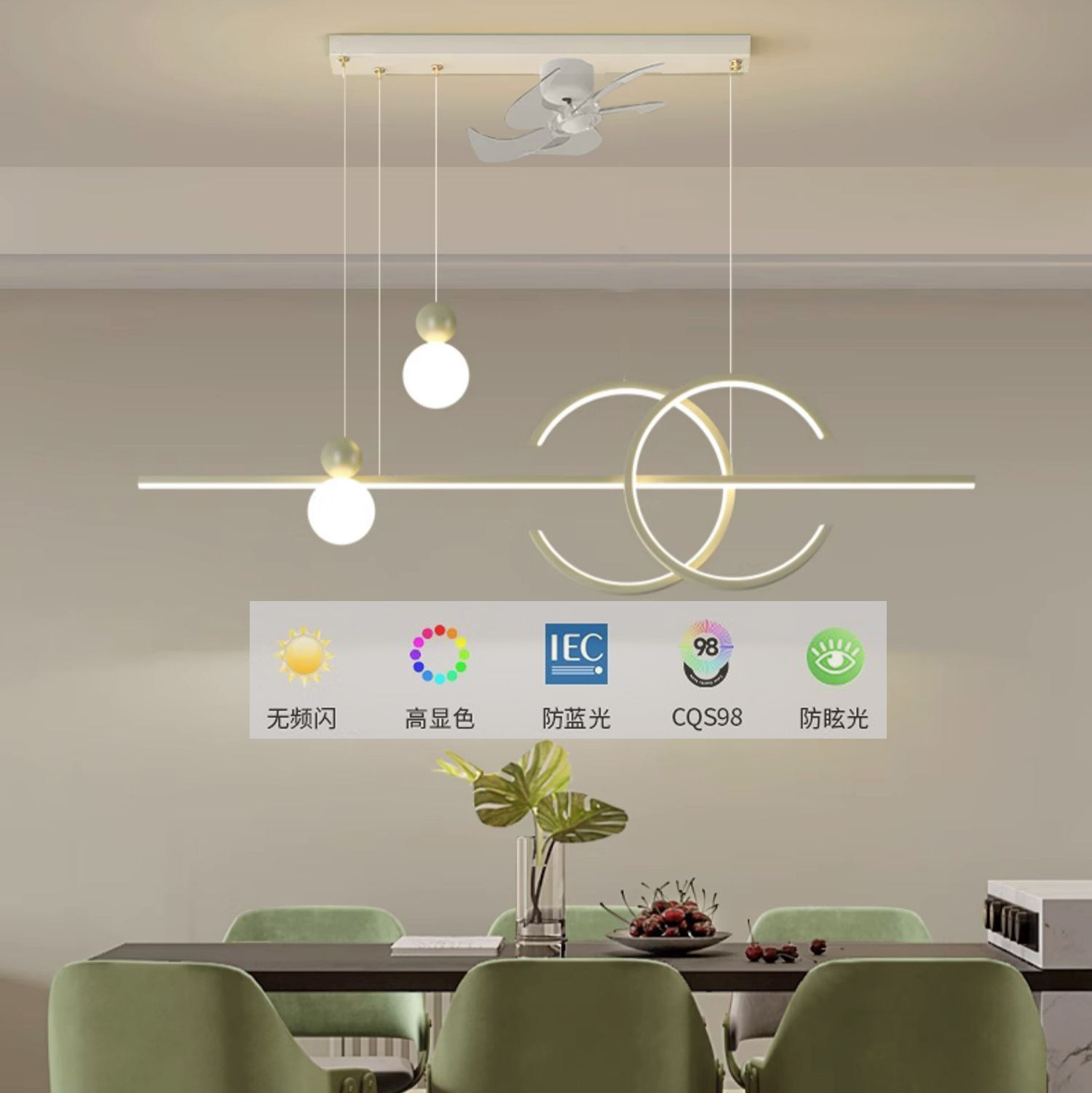 淘宝餐厅吊灯全光谱奶油风直流变频led风扇灯现代网红卧室吧台饭厅灯