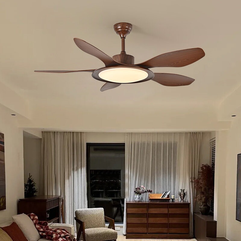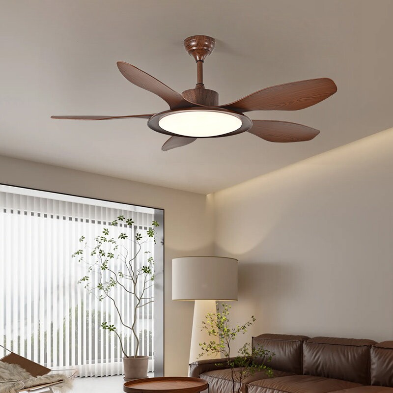 新款胡桃木色LED客厅风扇灯餐厅隐形一字型吊扇灯复古木纹吊灯具