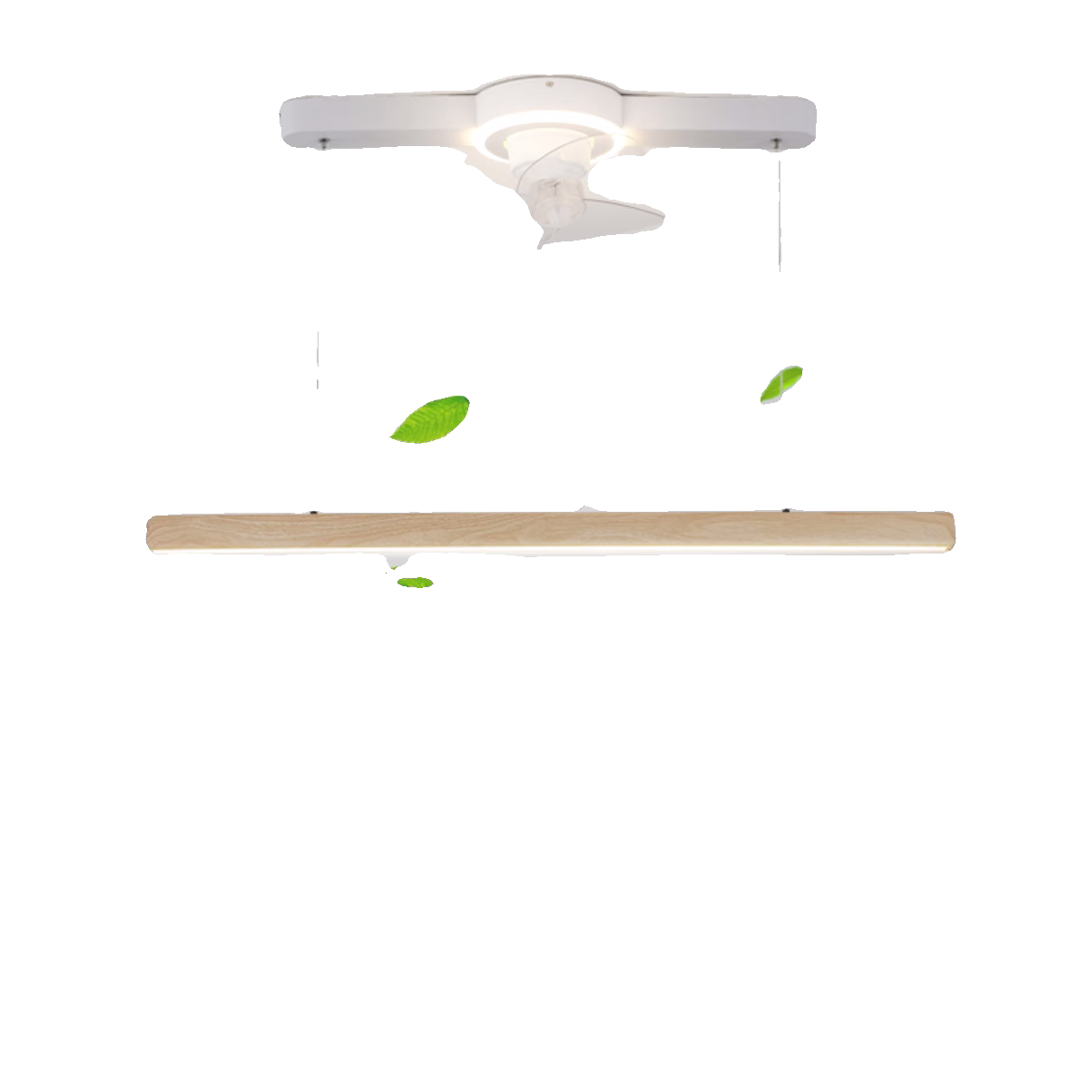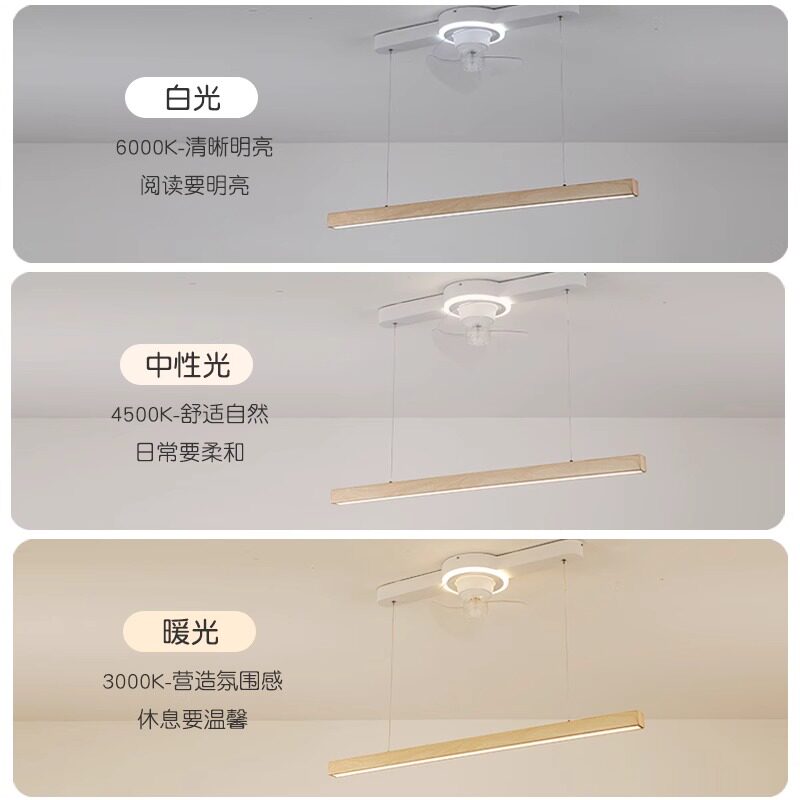 原木风餐厅吊灯家用护眼智能电扇一体灯可摇头一字长条吧台风扇灯