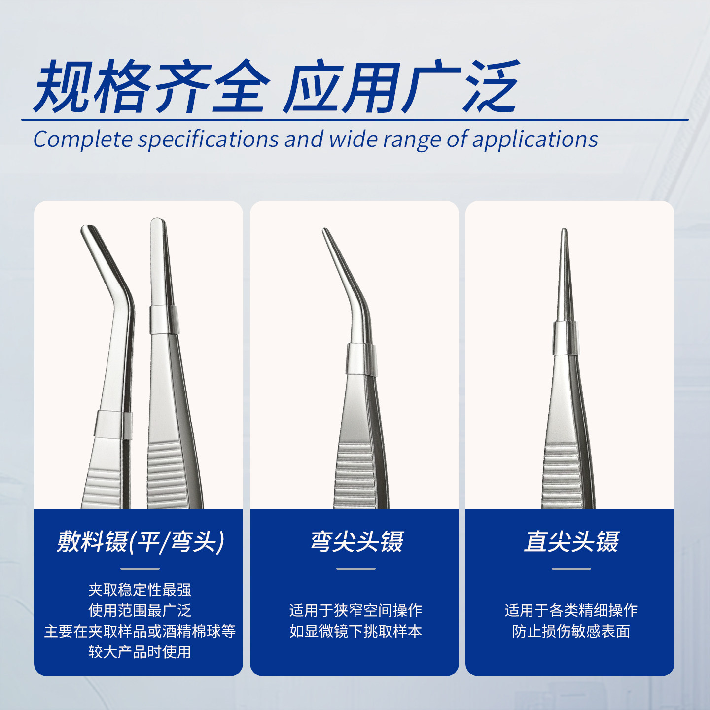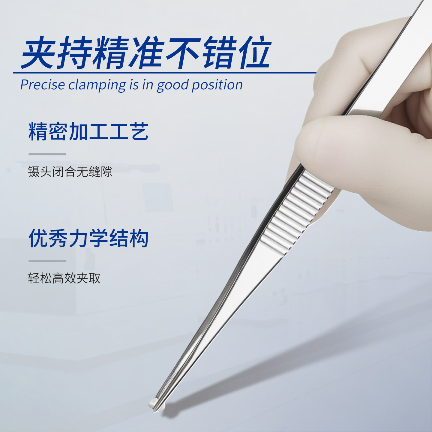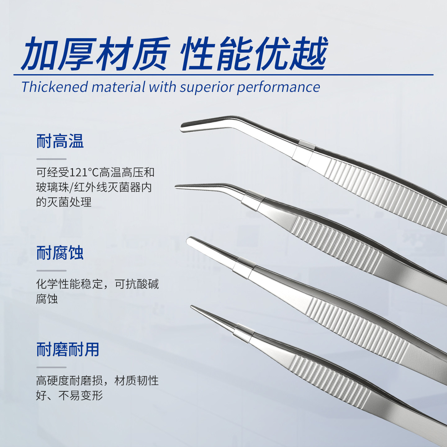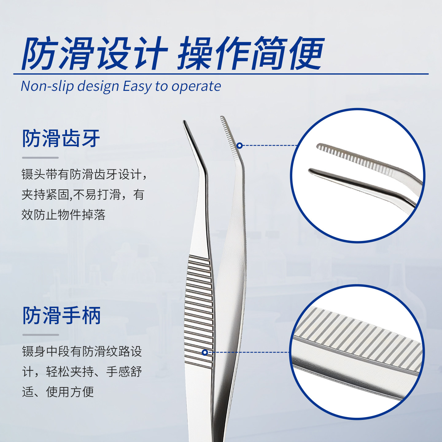 天猫Labshark实验室不锈钢镊子尖头弯头带齿镊子实验室用敷料夹小夹子