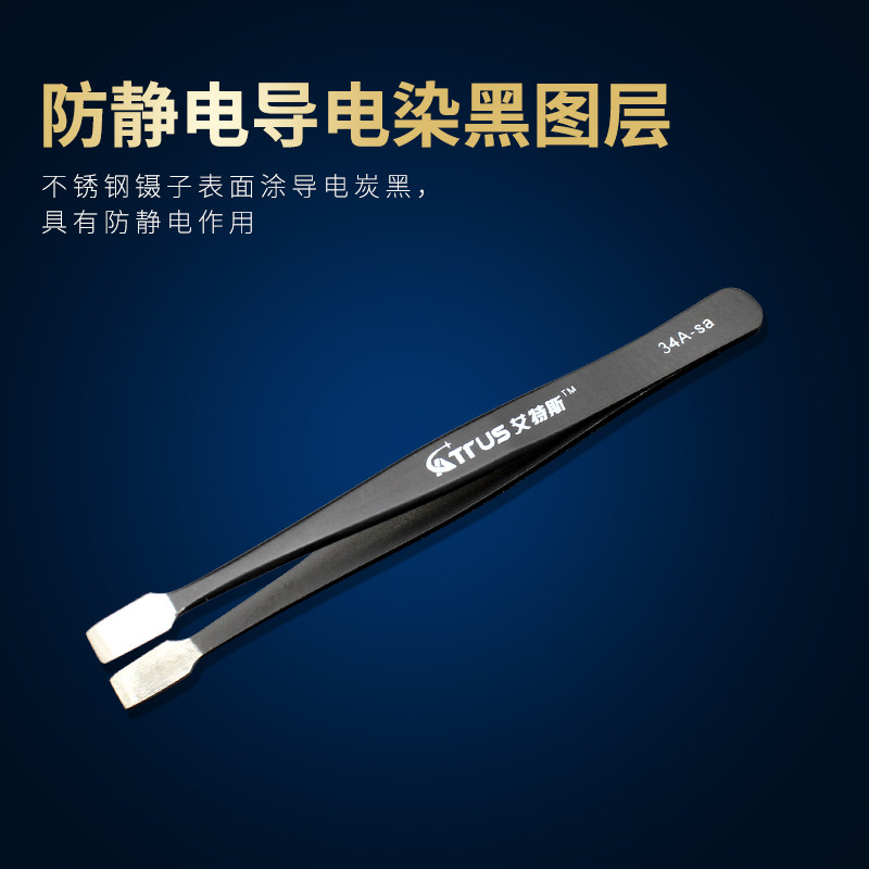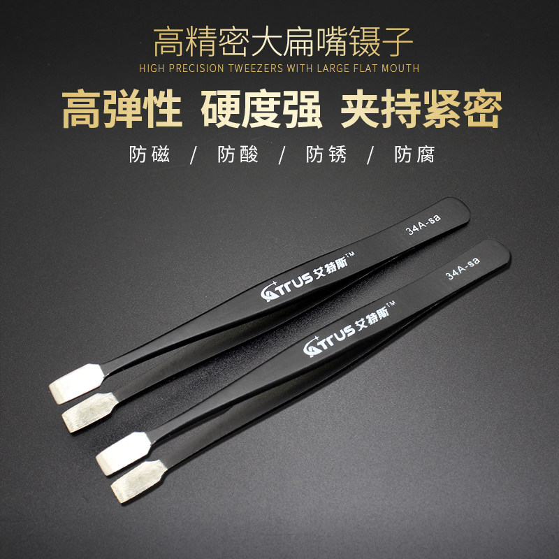 淘宝扁嘴镊子防静电不锈钢高精密夹邮票拔毛修眉手机维修加厚扁平聂子