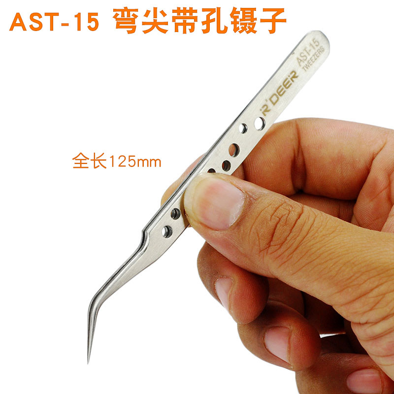 安立信高精密不锈钢镊子手机维修工具夹子弯头细尖头加厚超硬摄子