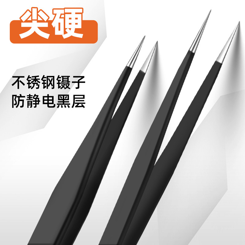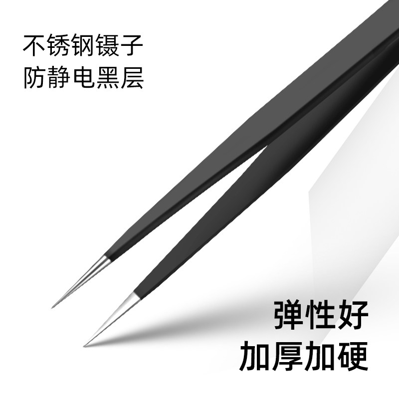 淘宝不锈钢精密镊子ESD黑色防静电夹子 弯尖直扁超尖加硬防磁维修工具