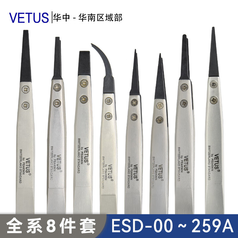 淘宝VETUS新升级ESD可换头防静电镊子无磁耐高温耐酸碱碳纤维导电塑胶