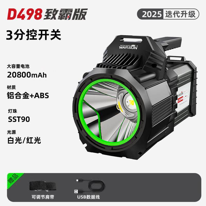 硕森强光手电筒超亮白激光充电战术聚光镭射户外便携远射多功能灯