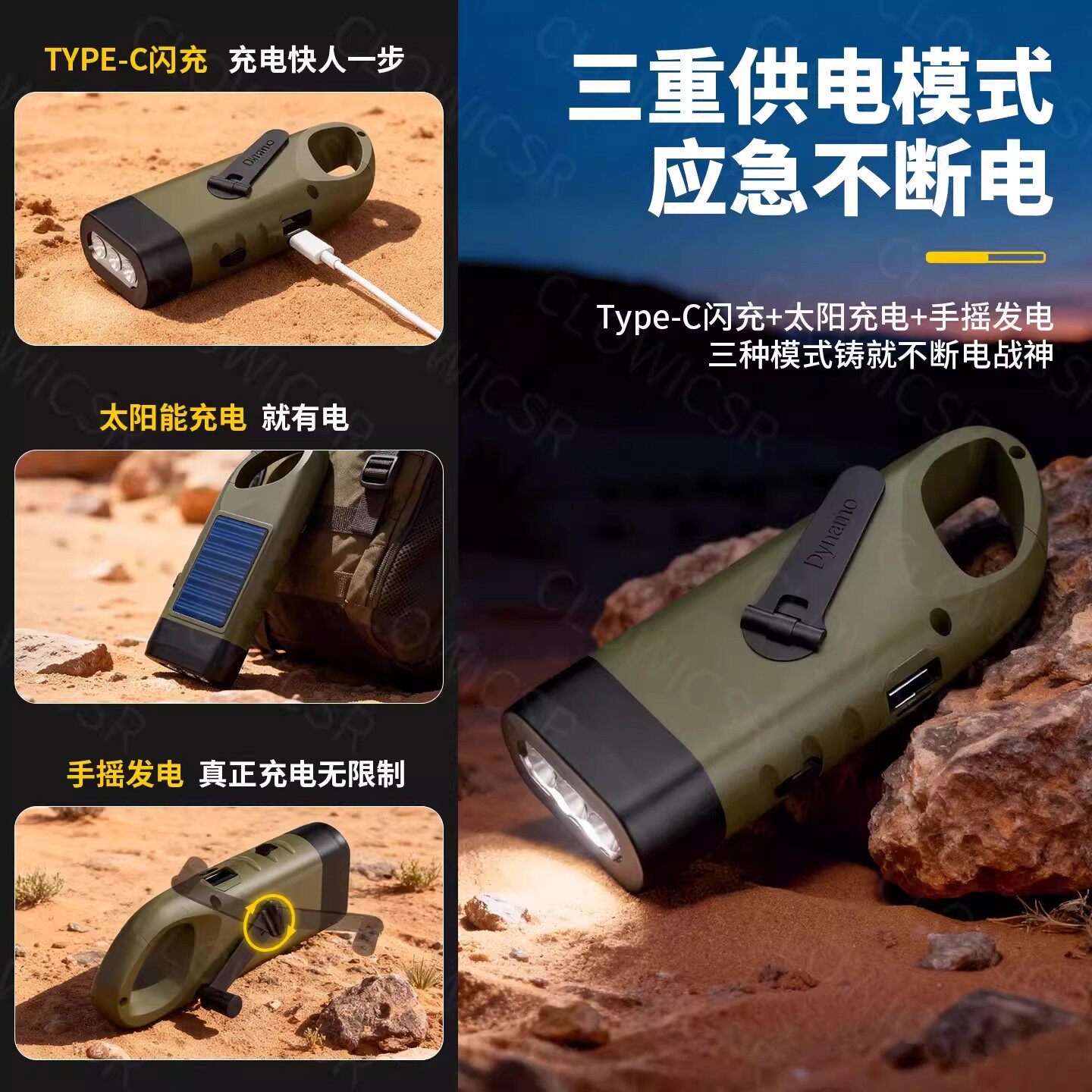 天战备应急多功能太阳能手摇手电筒发电强光可充电户外防灾应急照明