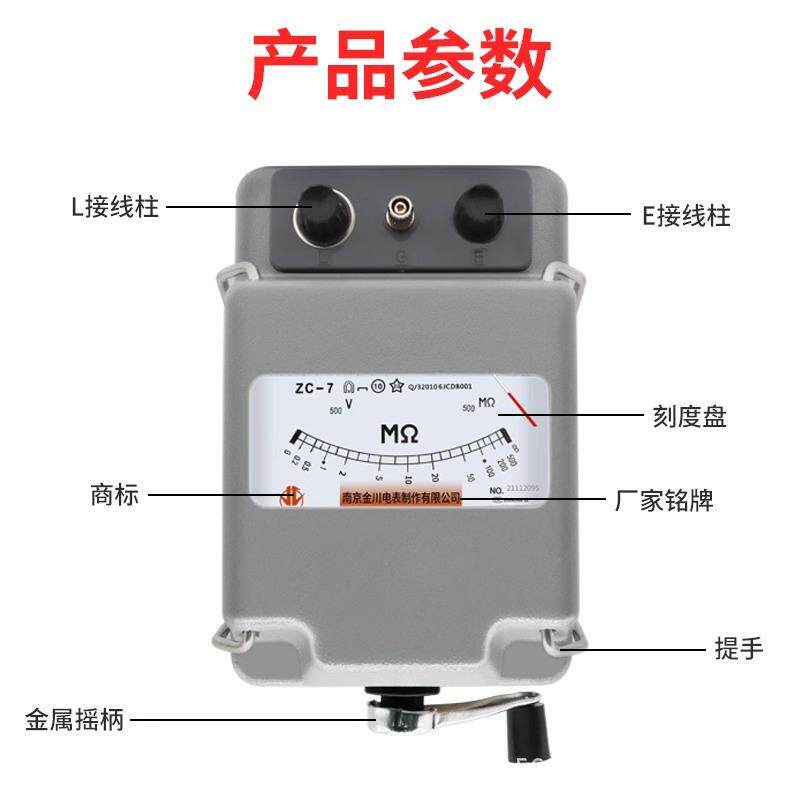南京金川ZC-7绝缘电阻测试仪兆欧表500V2500V5000V铝壳摇表可开票
