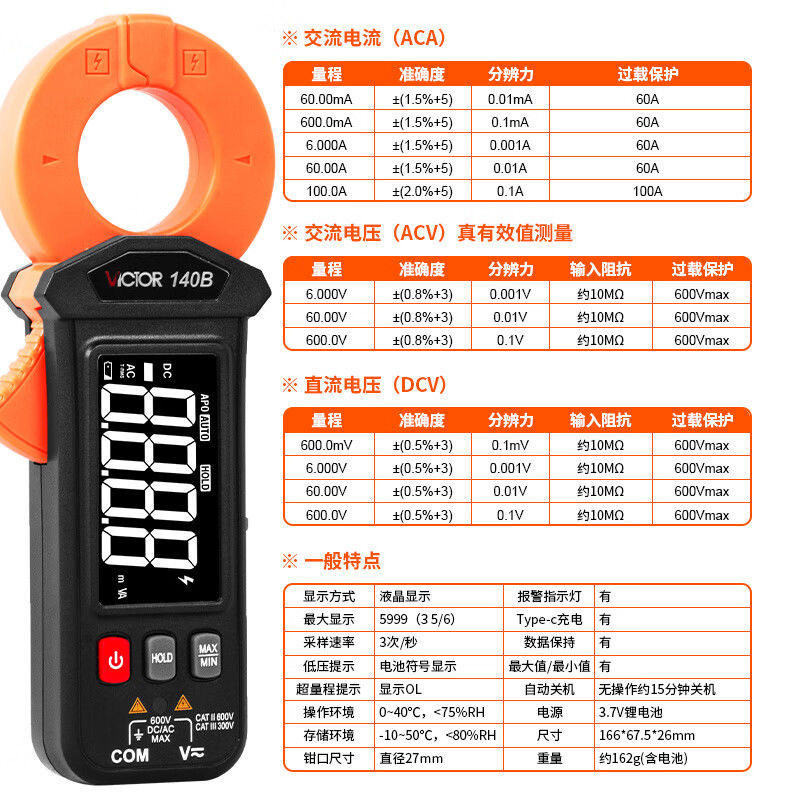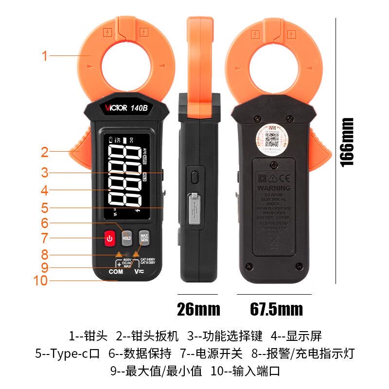 淘宝胜利毫安级钳形表漏电电流检测VC140B高精度数显智能数显便携式