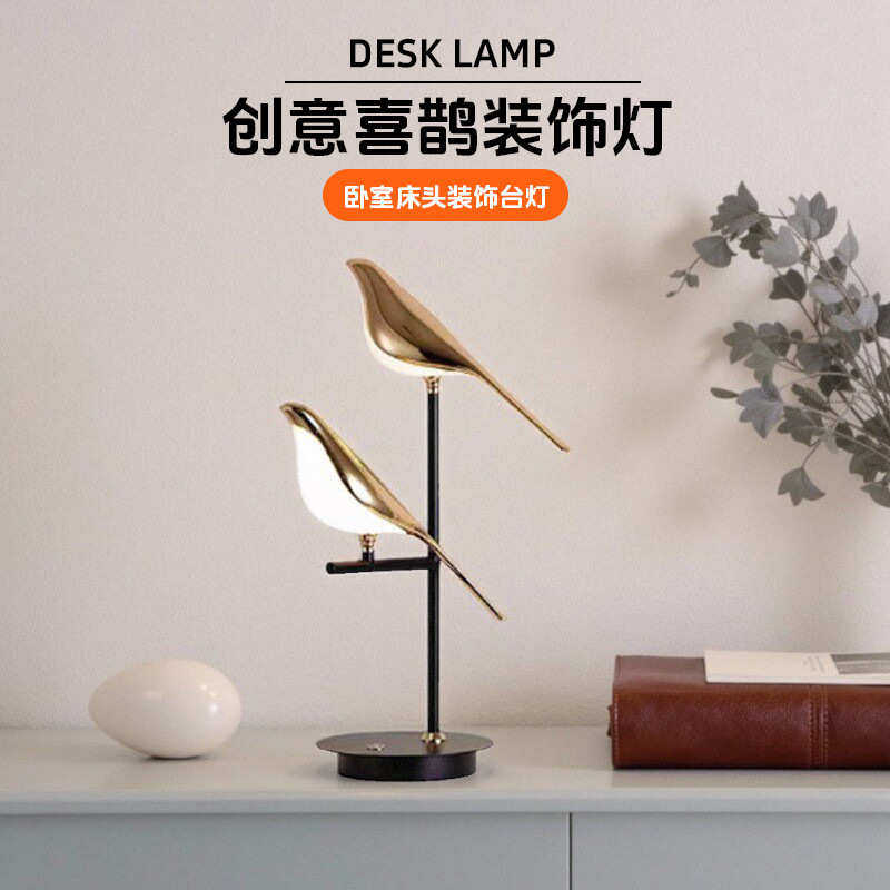 淘宝创意台灯卧室灯高端可调光装饰礼品喜鹊led护眼灯