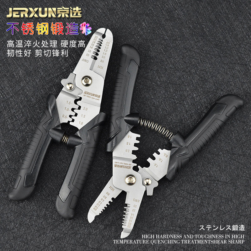 天猫京选剥线钳多功能电工压线拨线剪线扒皮钳子剥皮器不锈钢电缆剪刀