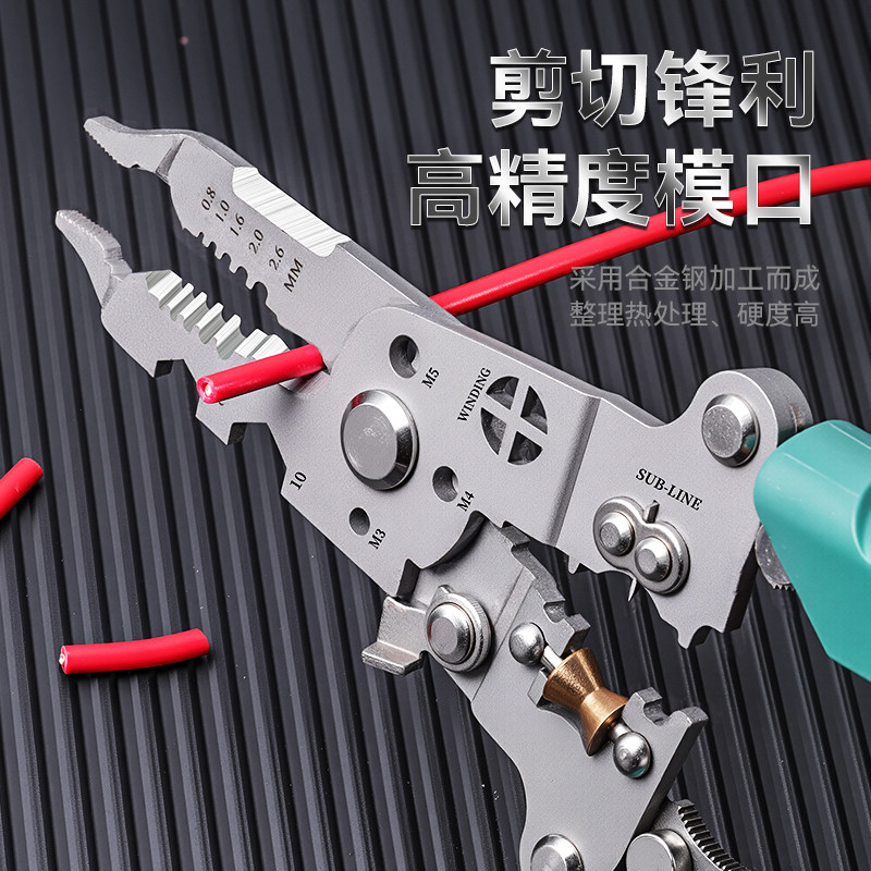 淘工业级多功能带测电笔剥线钳电工专用分线器可调节绕线大开口剪切