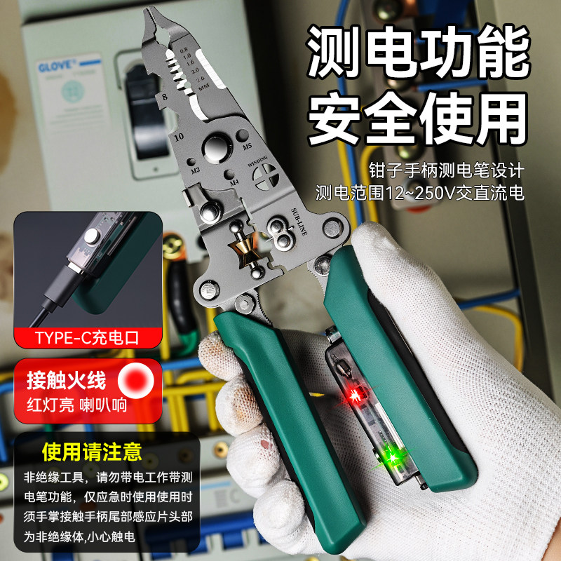 工业级多功能带测电笔剥线钳电工专用分线器可调节绕线大开口剪切