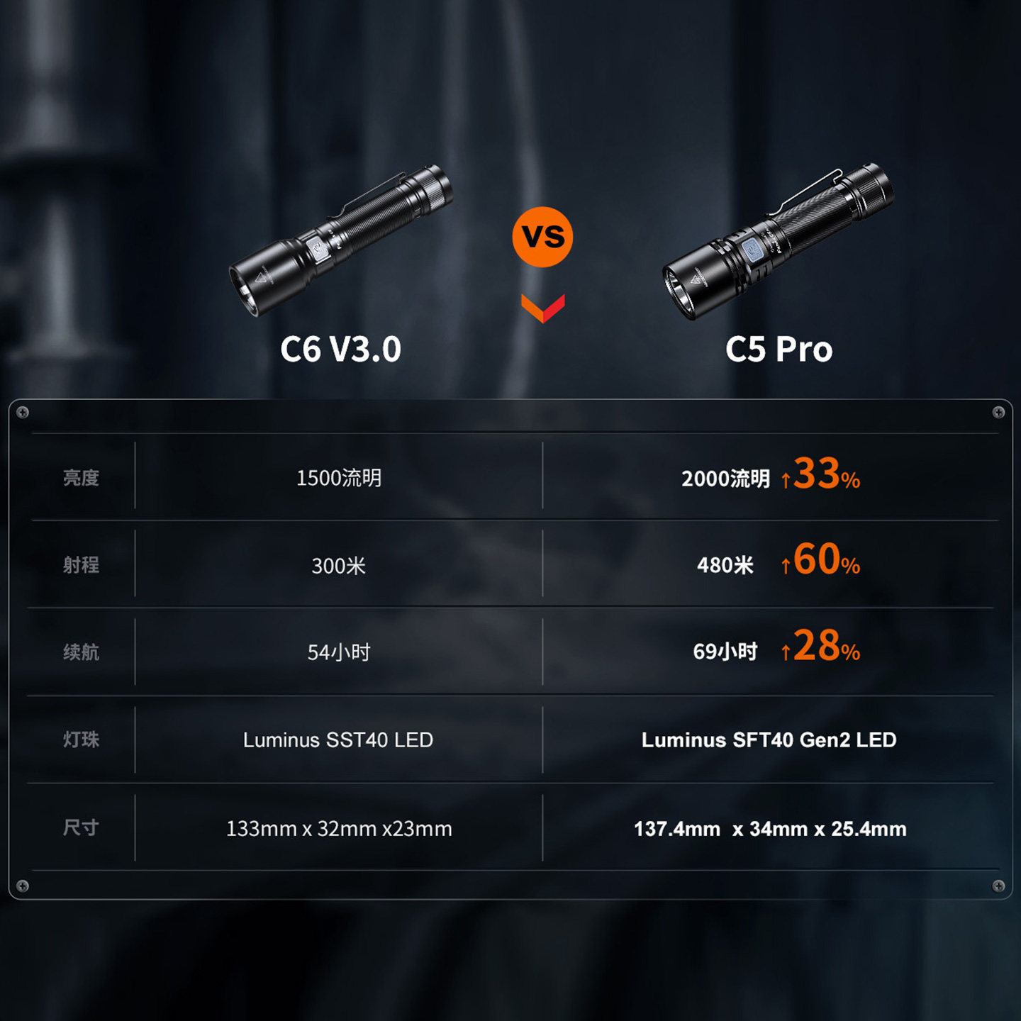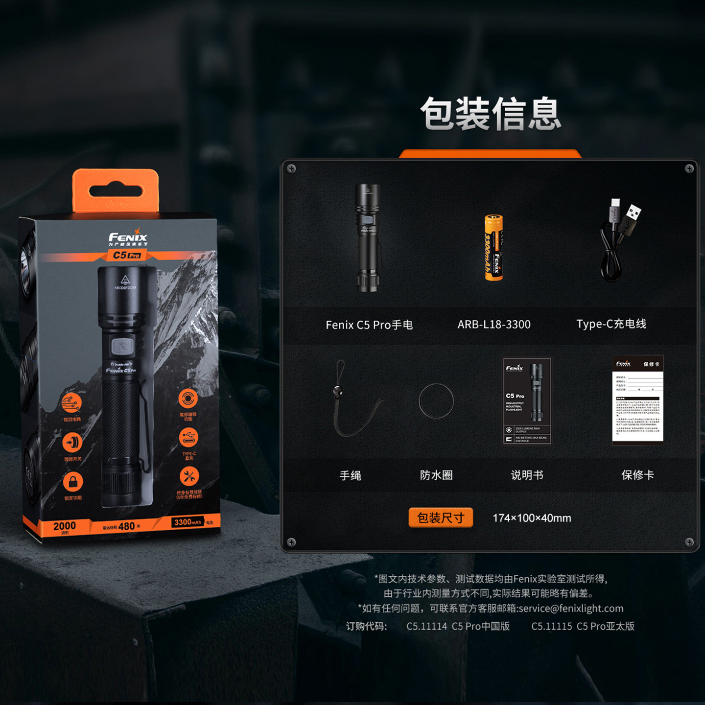 天猫Fenix菲尼克斯C5 Pro强光超亮户外远射手电筒磁吸充电检修工作灯