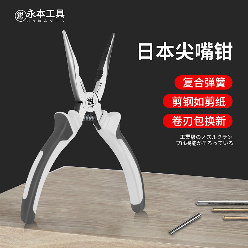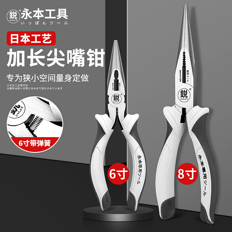 淘宝日系升级款铬钒钢6寸尖嘴钳合金弹簧8寸钳嘴加长10mm定制款钢丝钳