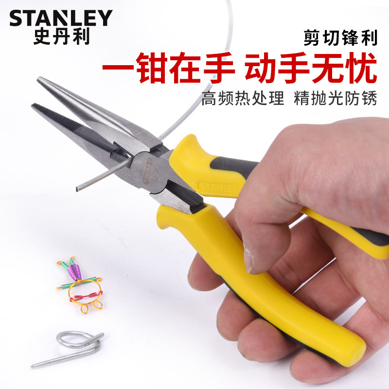 史丹利尖嘴钳电工专用钢丝钳工业级老虎钳长嘴钳子多功能尖咀钳