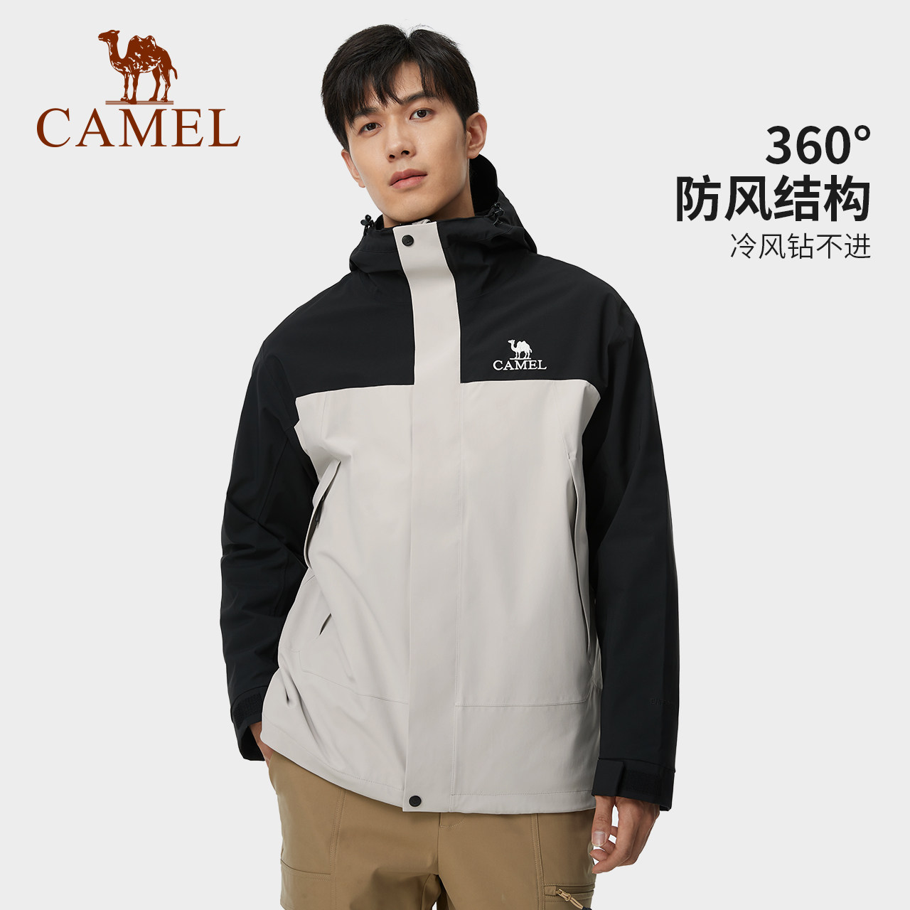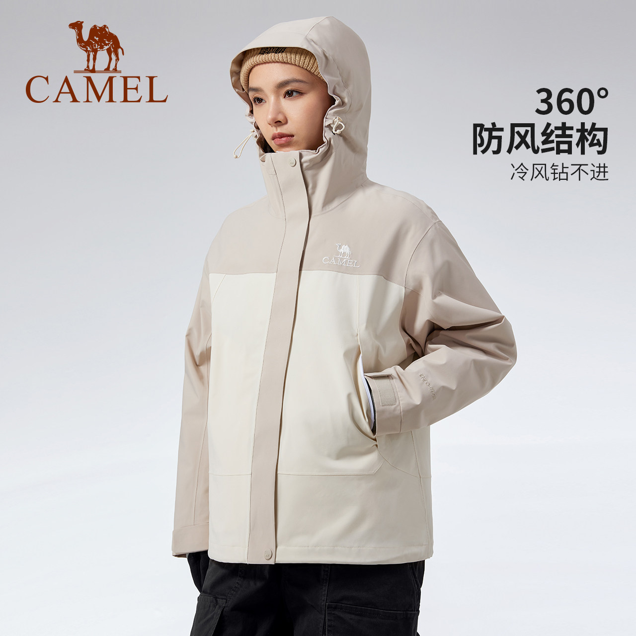 骆驼绯影红三合一冲锋衣男女同款户外可拆卸内胆三防保暖登山外套