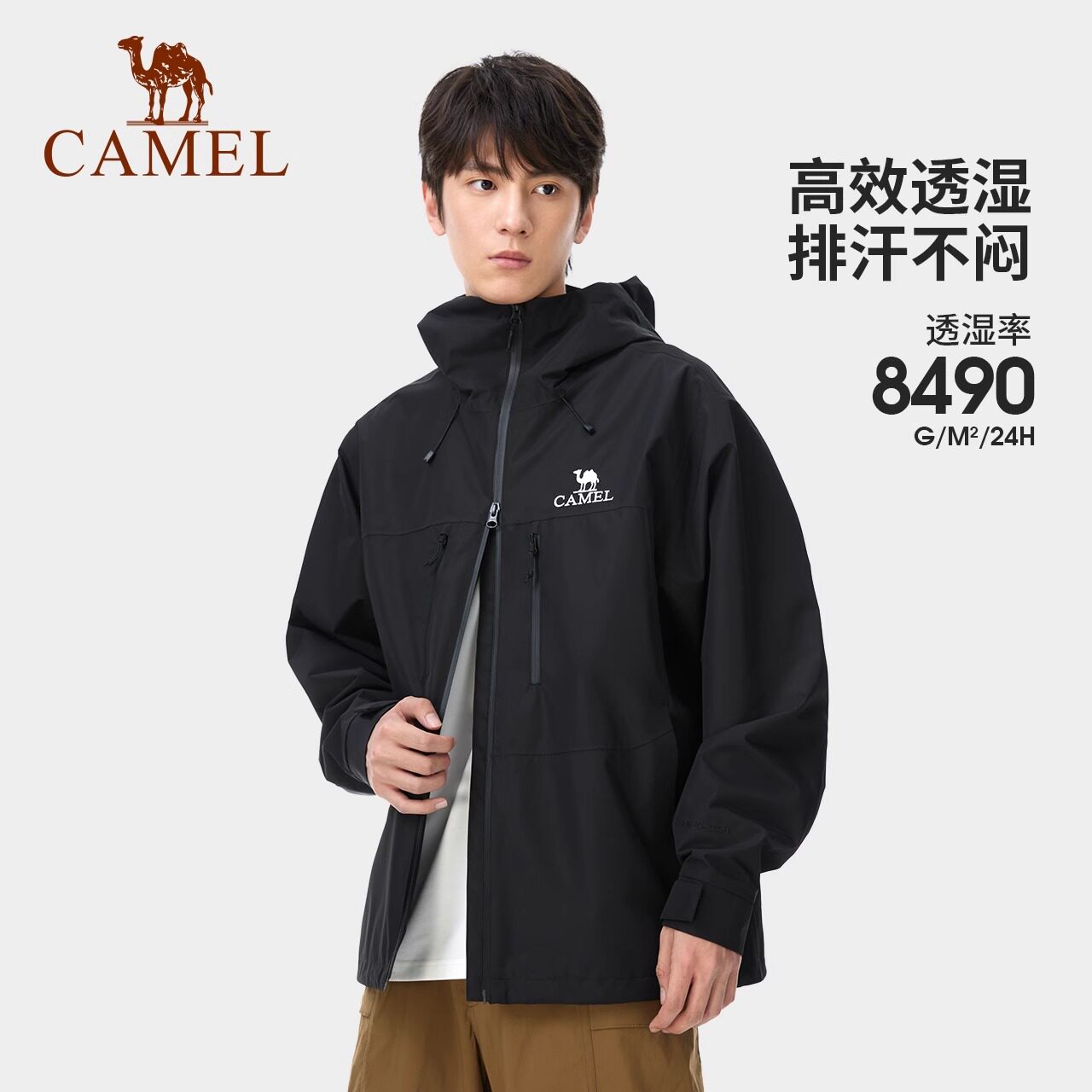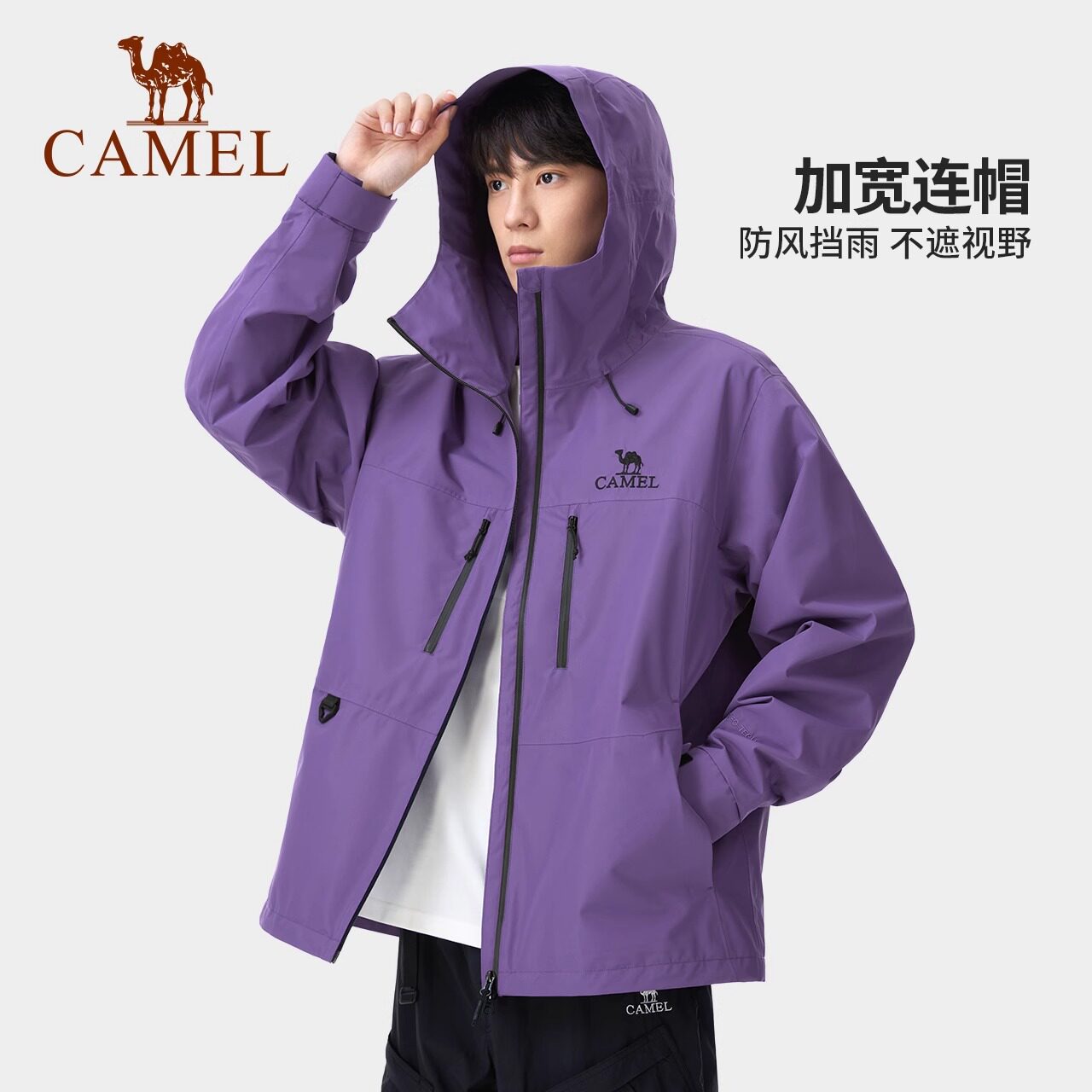 淘宝骆驼户外休闲单层冲锋衣男女同款轻量防风防水登山服旅行连帽外套