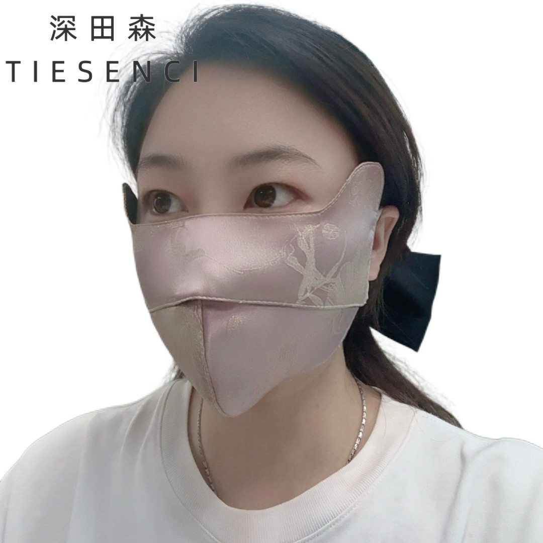 淘宝100%桑蚕丝香云纱口罩女2025新款夏季透气防紫外线护眼角遮阳面罩