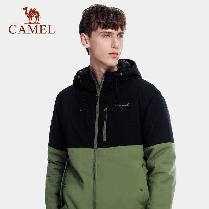 天猫骆驼QOMOLANG系列夹棉冲锋衣男女户外服装潮牌拼撞色防水夹克外套