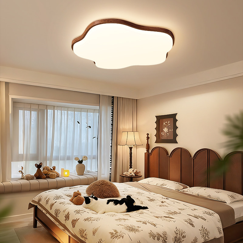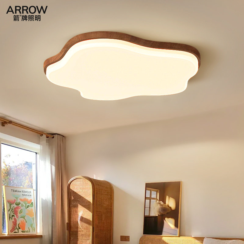 天猫箭牌儿童房卧室灯中古风原木全光谱护眼吸顶灯2026年新款云朵灯具