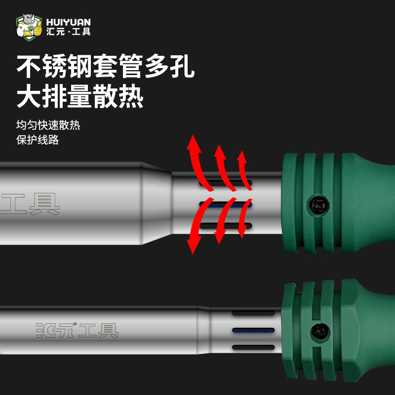 汇元大功率电烙铁是一款专为工业级精密焊接设计的智能恒温专业套装。采用先进PID温控技术,温度精准稳定,可在200℃—480℃间自由调节,响应迅速,有效防止过热损伤元件。配备高导热合金烙铁头,支持快速更换,适用于电子元器件、线路板、金属件等多种焊接场景。套装包含主机、多款烙铁头、支架、清洁海绵及辅助工具,结构坚固,操作安全。大功率输出确保持续高效作业,适合维修、制造及研发等专业领域。汇元电烙铁以耐用性、精准控温与人性化设计,成为工程师与技术人员信赖的高效焊接解决方案。