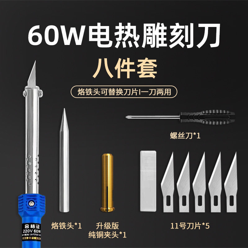 这款家用式电烙铁热切割刀套装是一款多功能电热工具,集雕刻、切瓶、热熔、烫洞及园艺修剪于一体,适用于手工DIY、模型制作、玻璃切割、木材雕刻及园艺造型等多种场景。采用高效发热元件,升温迅速,温度可调,操作安全便捷。刀头设计多样,可更换不同形状,满足精细切割与粗加工需求。绝缘手柄防滑耐高温,提升使用舒适度与安全性。特别适合手工爱好者、园艺爱好者及家庭维修使用,兼具实用性与创意性,是居家创作与修整的理想工具套装。