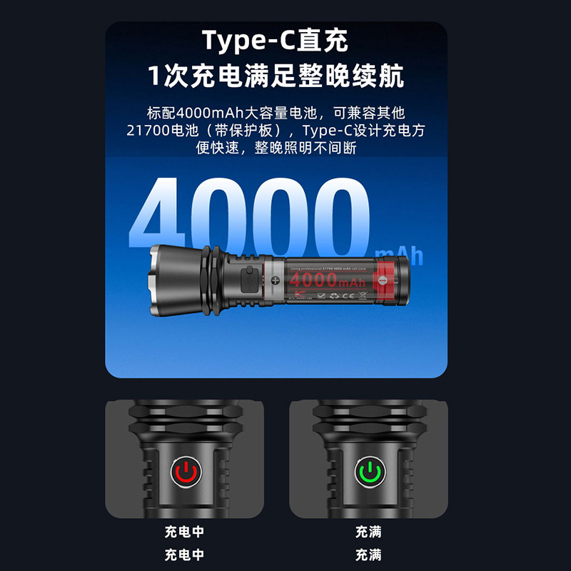 天康铭手电筒强光充电家用耐户外超亮远射手提式应急疝气led探照灯